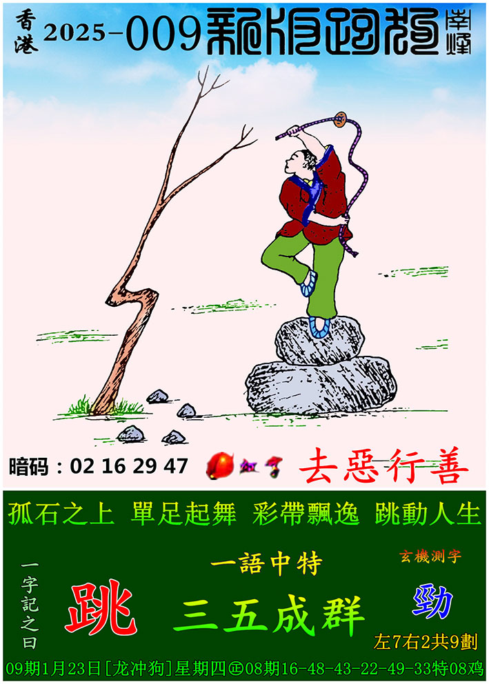 009期:新版跑狗一字記之曰【跳】 玄機測字:【勁】
