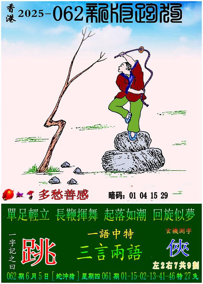 062期:新版跑狗一字記之曰【舞】 玄機測字:【俠】