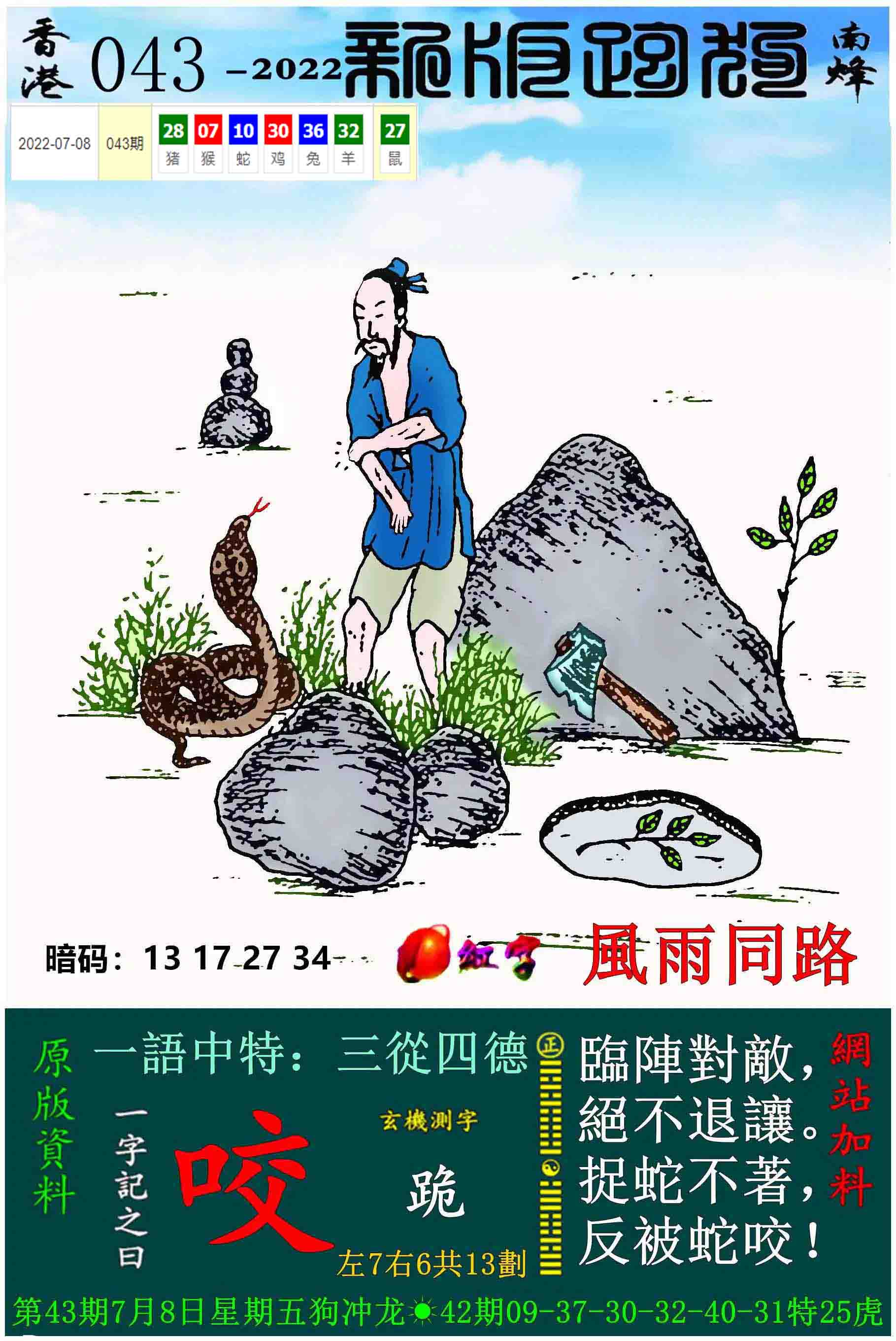 079期:新版跑狗一字記之曰【咬】 玄機測字:【誰】