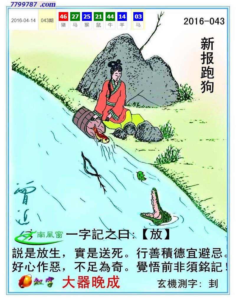 主题 : 093期:新版跑狗一字記之曰【送】 玄機測字:【精】