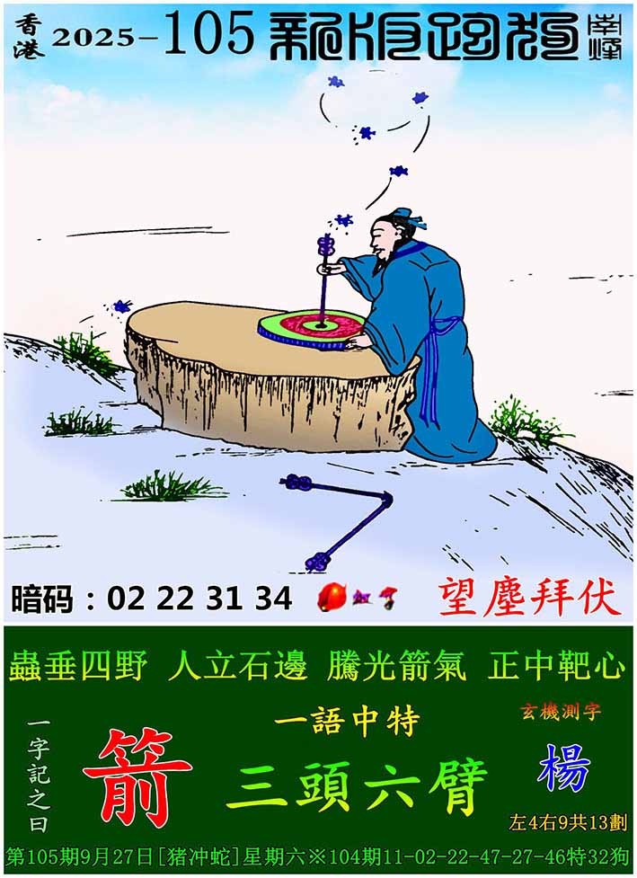 105期:新版跑狗一字記之曰【箭】 玄機測字:【楊】