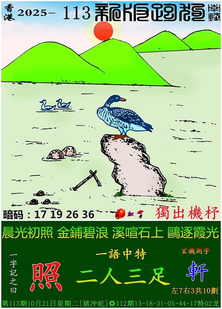 113期新版跑狗一字記之曰:【照】