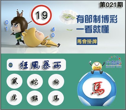 021期正版彩图挂:19 爆:马 挂牌成语:狂风暴雨 挂牌出肖:鼠蛇狗虎猴马