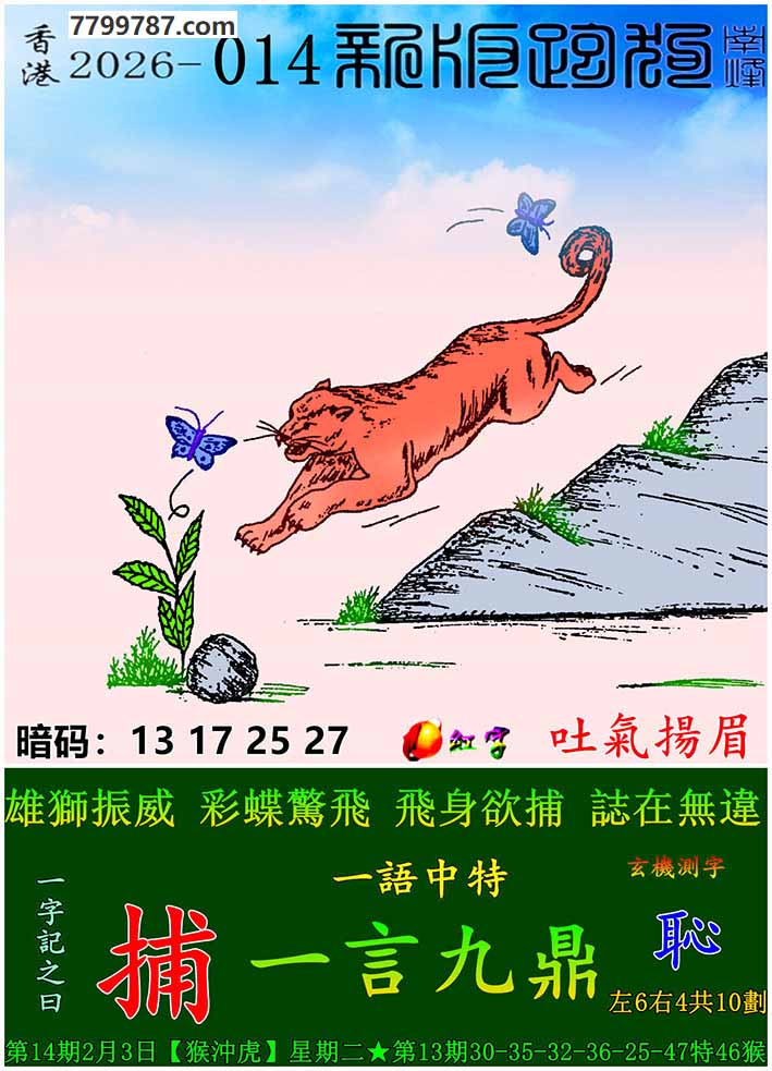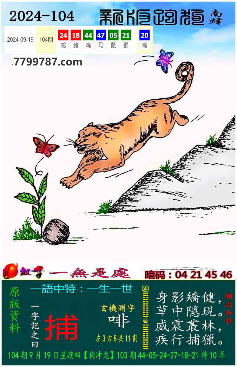 014期:新版跑狗一字記之曰【捕】 玄機測字:【恥】
