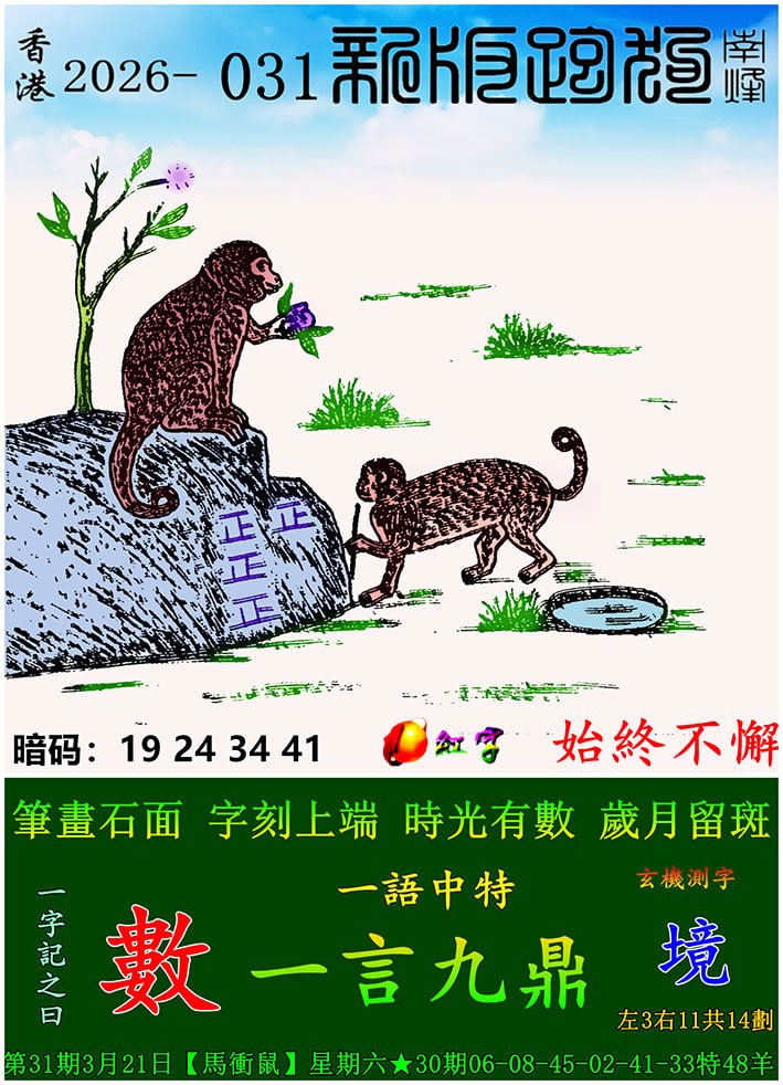 031期新版跑狗一字記之曰:【數】 玄機測字:《境》